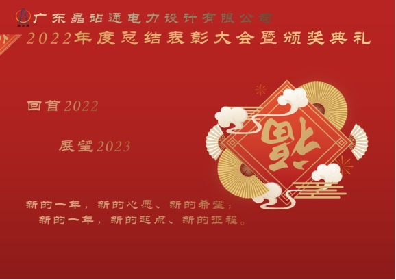 律回春晖渐、万象始更新。2023年1月12日,广东晶站通电力设计有限公司2022年度总结大会“隆重举行”,大家欢聚一堂,细数过去风雨同舟奋力拼搏的点点滴滴,聆听各部门对2022年的工作总结,展望公司未来发展的蓬勃蓝图。在此之际,我们告别了成绩斐然的2022年,迎来了充满希望的2023年。